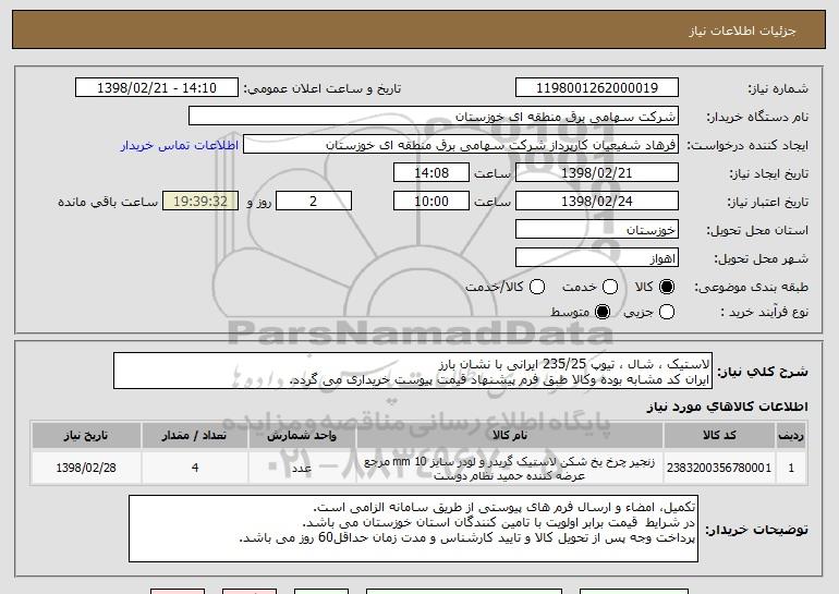 نام دستگاه خریدار:شرکت سهامی برق منطقه ای خوزستان