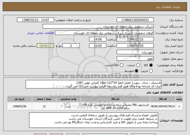 نام دستگاه خریدار:شرکت سهامی برق منطقه ای خوزستان