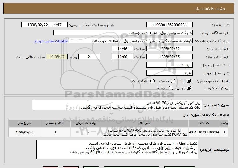 شرح کلی نیاز: اویل کولر گیربکس لودر W120 اصلی