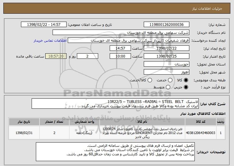 شرح کلی نیاز: لاستیک 13R22/5 – TUBLESS –RADIAL – STEEL BELT