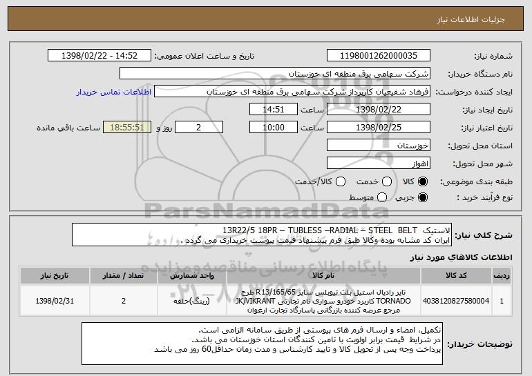 نام دستگاه خریدار:شرکت سهامی برق منطقه ای خوزستان