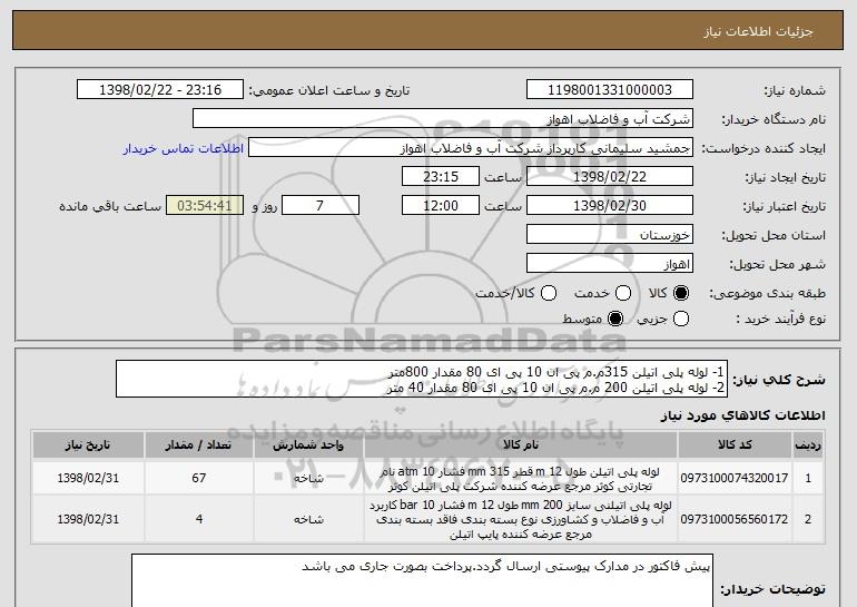نام دستگاه خریدار:شرکت آب و فاضلاب اهواز