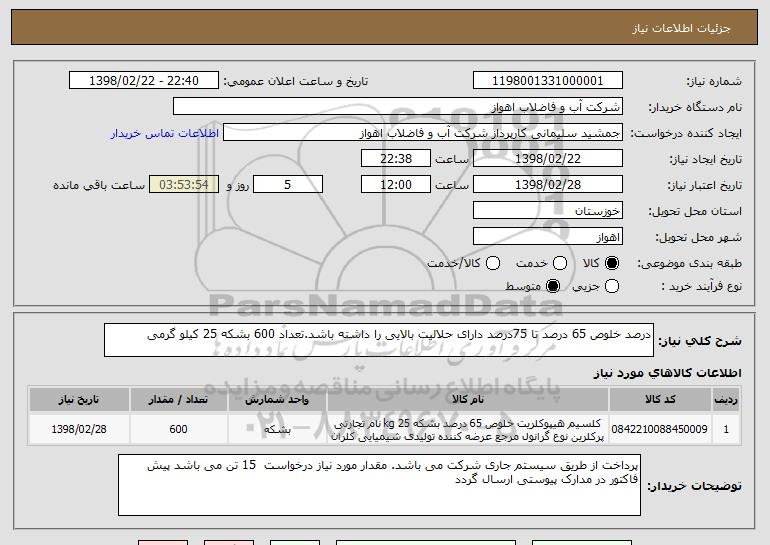 نام دستگاه خریدار:شرکت آب و فاضلاب اهواز