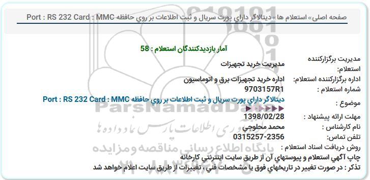 استعلام دیتالاگر دارای پورت سریال و ثبت اطلاعات, استعلام استعلام دیتالاگر دارای پورت سریال و ثبت اطلاعات