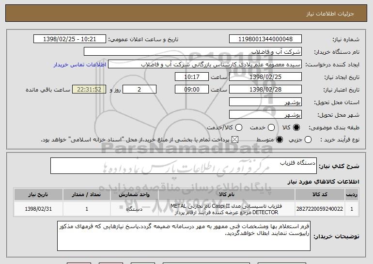نام دستگاه خریدار:شرکت آب و فاضلاب