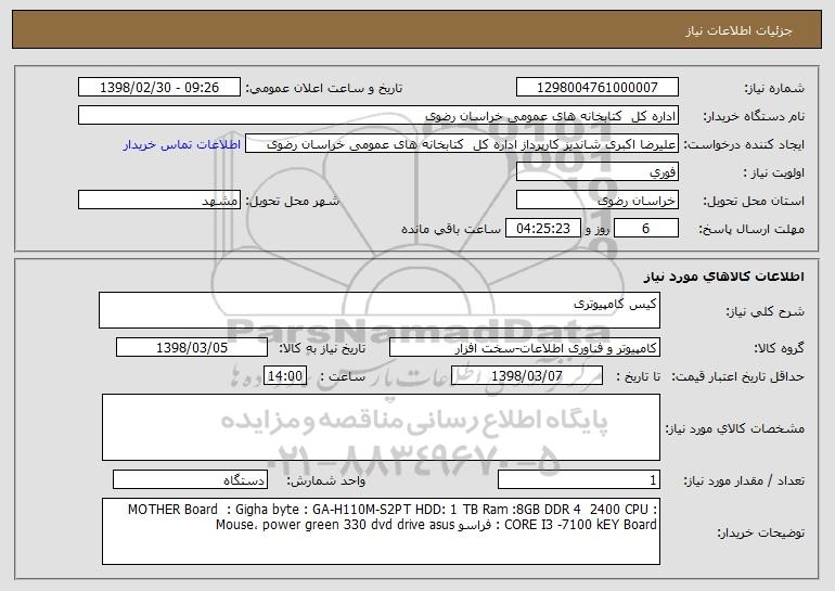 نام دستگاه خریدار:اداره کل کتابخانه های عمومی خراسان رضوی
