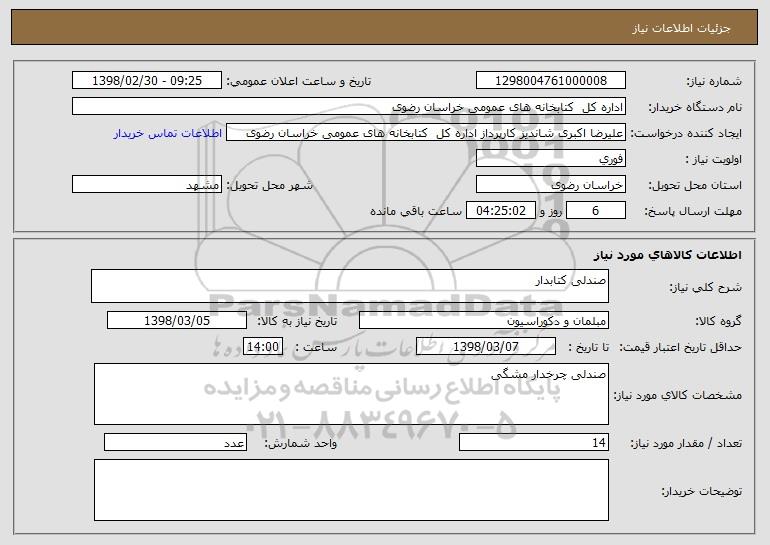 نام دستگاه خریدار:اداره کل کتابخانه های عمومی خراسان رضوی