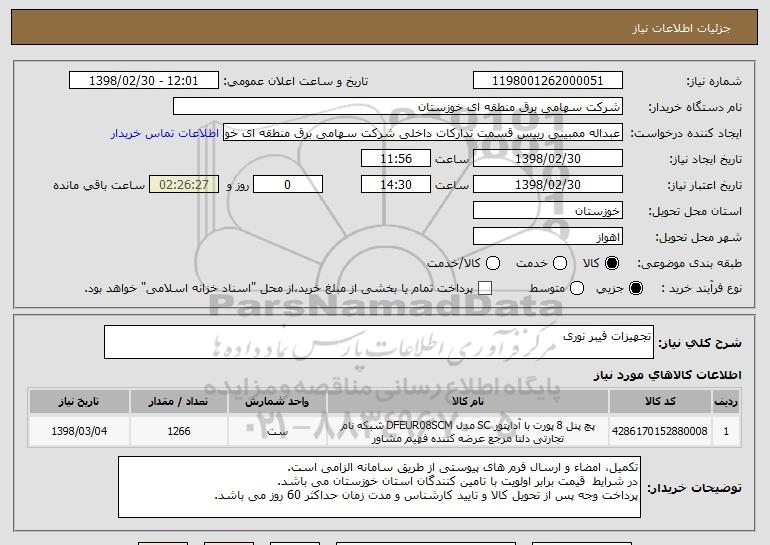 شرح کلی نیاز: تجهیزات فیبر نوری