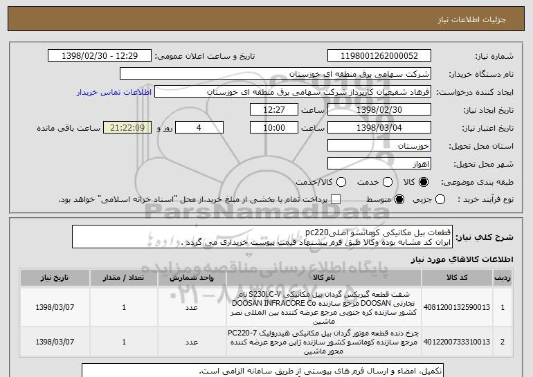 نام دستگاه خریدار:شرکت سهامی برق منطقه ای خوزستان