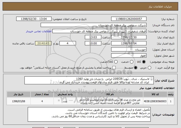نام دستگاه خریدار:شرکت سهامی برق منطقه ای خوزستان