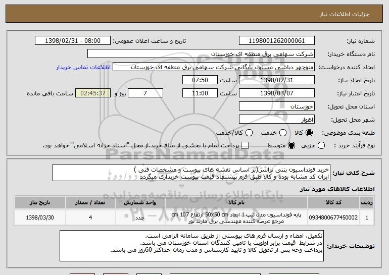نام دستگاه خریدار:شرکت سهامی برق منطقه ای خوزستان