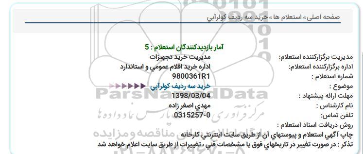 اداره برگزارکننده استعلام: اداره خرید اقلام عمومی و استاندارد