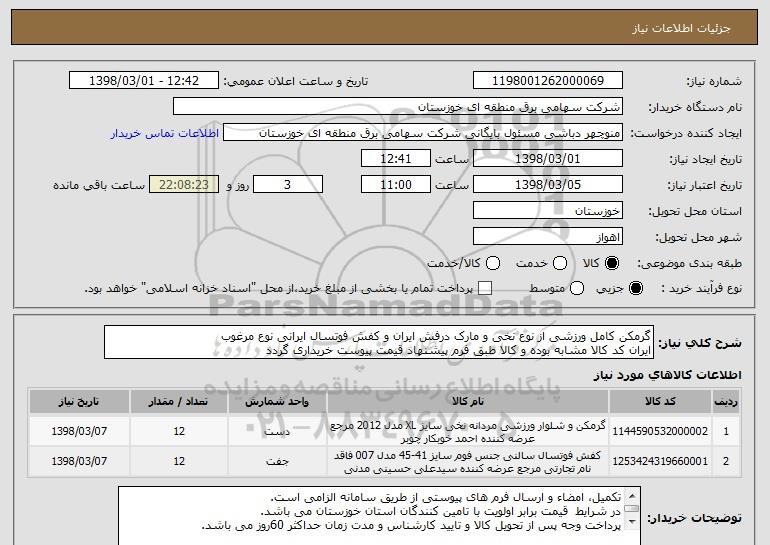 نام دستگاه خریدار:شرکت سهامی برق منطقه ای خوزستان