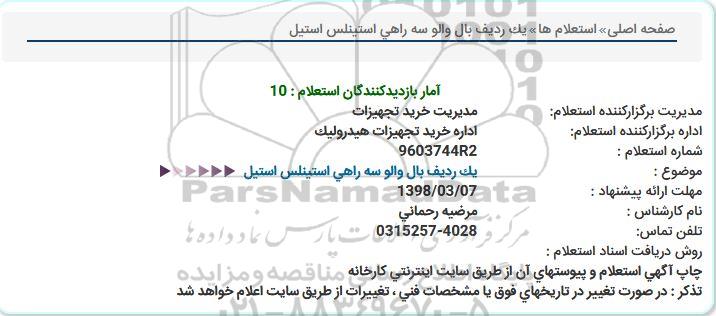 اداره برگزارکننده استعلام: اداره خرید تجهیزات هیدرولیک