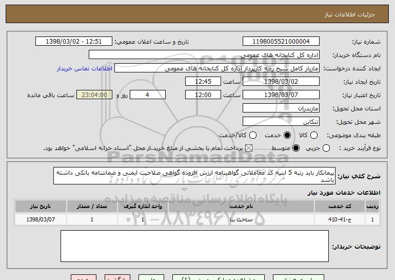 استعلام پیمانکار باید رتبه 5 ابنیه کد معاملاتی گواهینامه ارزش افزوده گواهی صلاحیت ایمنی و ضمانتنامه بانکی داشته باشد, استعلام پیمانکار باید رتبه 5 ابنیه کد معاملاتی گواهینامه ارزش افزوده گواهی صلاحیت ایمنی و ضمانتنامه بانکی داشته باشد
