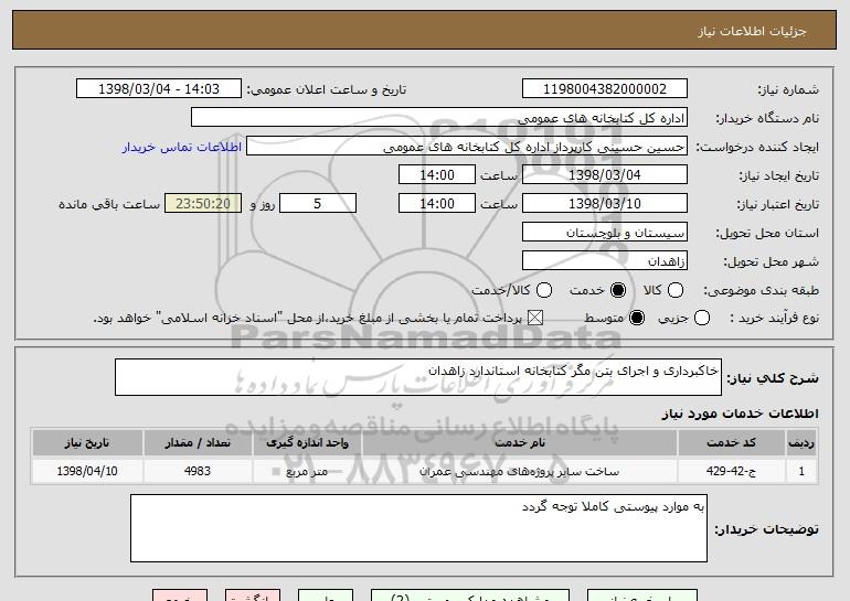 شرح کلی نیاز: خاکبرداری و اجرای بتن مگر کتابخانه استاندارد زاهدان