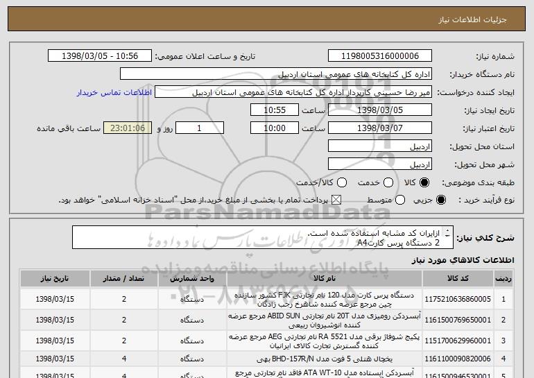 نام دستگاه خریدار:اداره کل کتابخانه های عمومی استان اردبیل