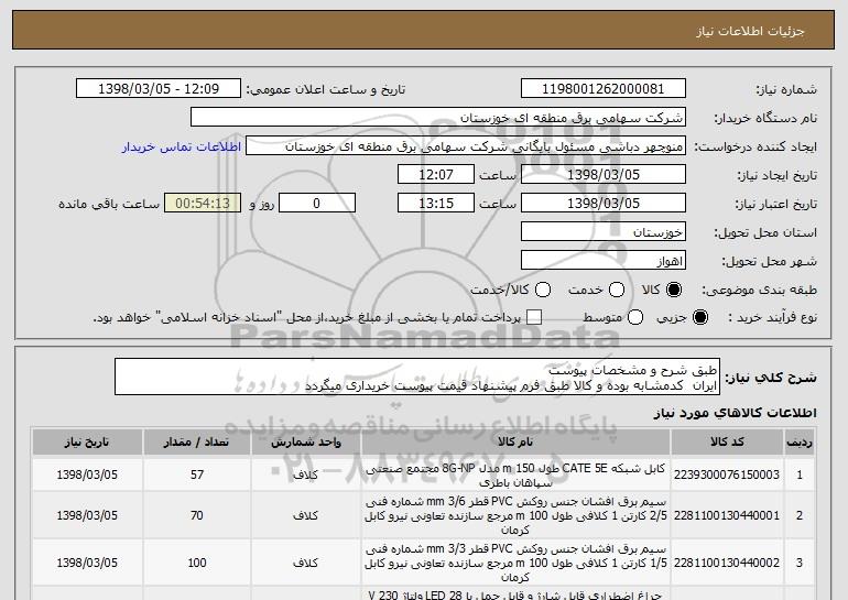 نام دستگاه خریدار:شرکت سهامی برق منطقه ای خوزستان