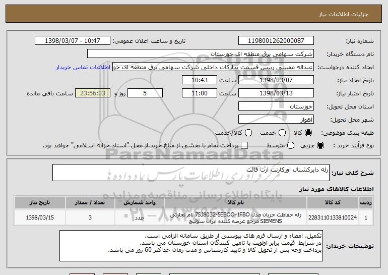 نام دستگاه خریدار:شرکت سهامی برق منطقه ای خوزستان