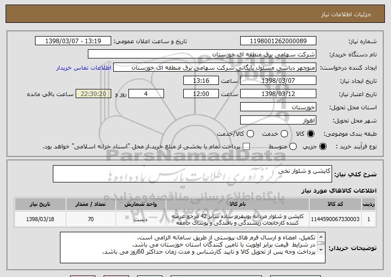نام دستگاه خریدار:شرکت سهامی برق منطقه ای خوزستان