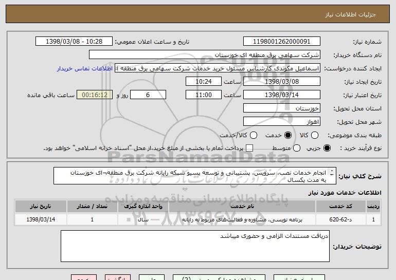 شرح کلی نیاز: انجام خدمات نصب، سرویس، پشتیبانی و توسعه پسیو شبکه رایانه شرکت برق منطقه¬ای خوزستان
