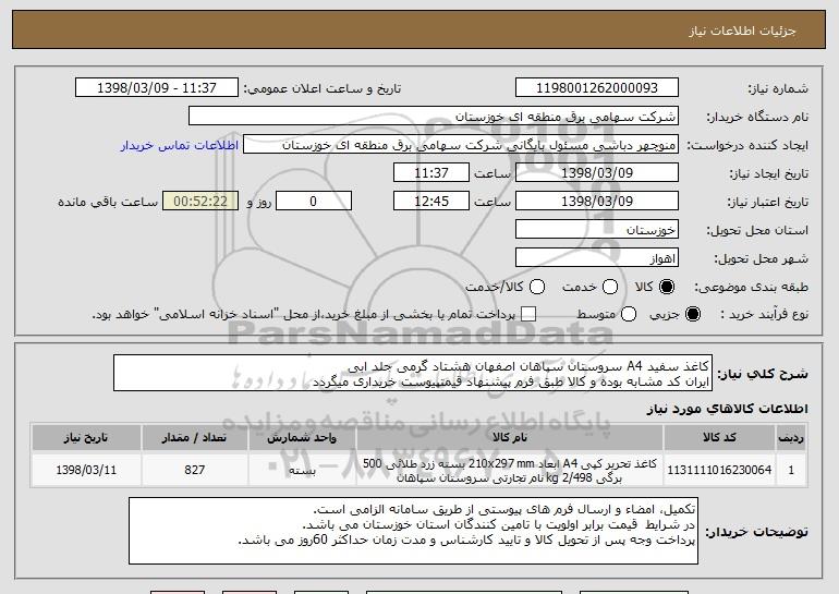 نام دستگاه خریدار:شرکت سهامی برق منطقه ای خوزستان