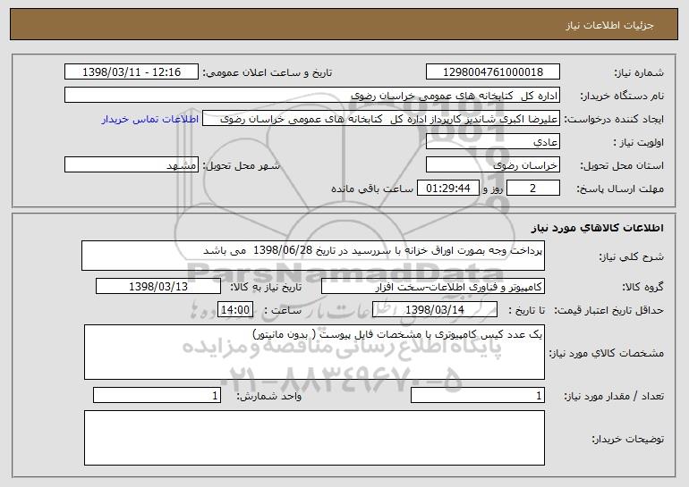 نام دستگاه خریدار:اداره کل کتابخانه های عمومی خراسان رضوی