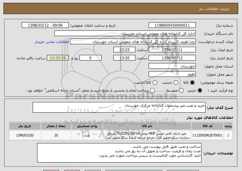 شرح کلی نیاز: خرید و نصب میز پیشخوان کتابخانه مرکزی خوزستان