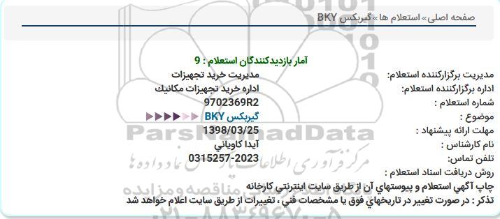 استعلام گیربکس BKY , استعلام,استعلام گیربکس BKY