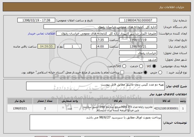 نام دستگاه خریدار:اداره کل کتابخانه های عمومی خراسان رضوی