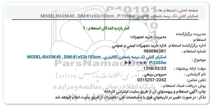 اداره برگزارکننده استعلام: اداره خرید تجهیزات ایمنی و عمومی