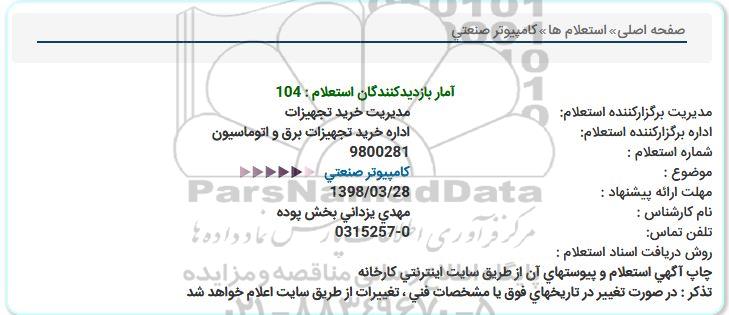 اداره برگزارکننده استعلام: اداره خرید تجهیزات برق و اتوماسیون