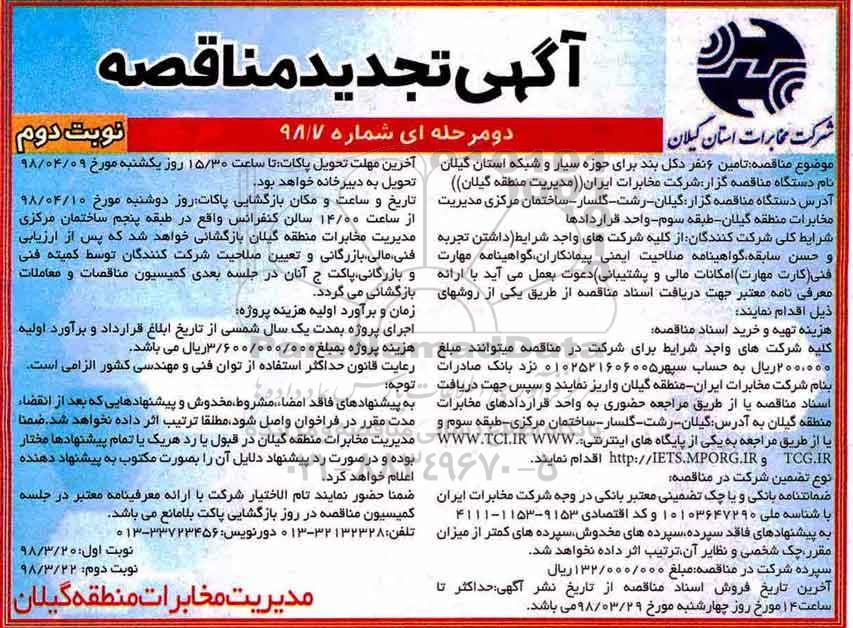 نام دستگاه مناقصه گزار: شرکت مخابرات ایران مدیریت منطقه گیلان