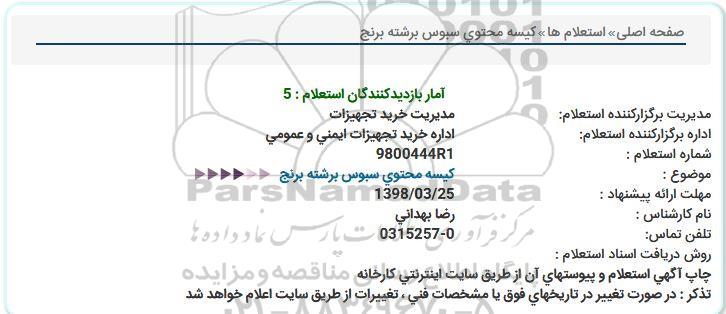 اداره برگزارکننده استعلام: اداره خريد تجهیزات ایمنی و عمومی