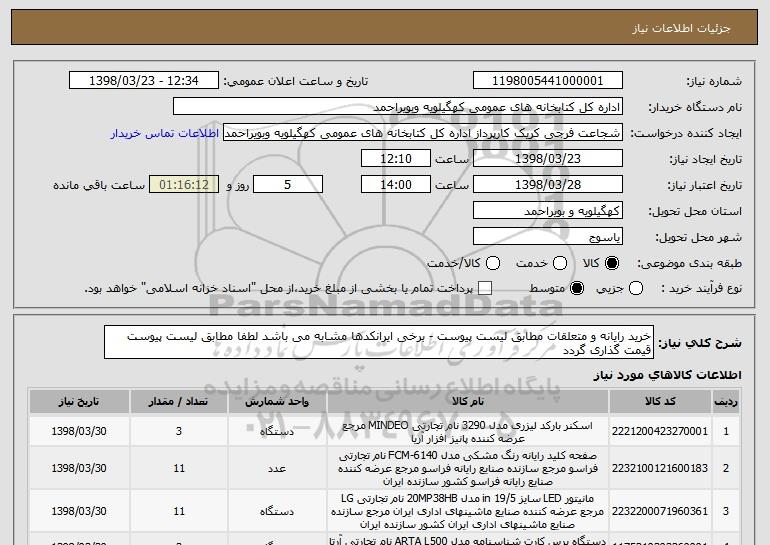 نام دستگاه خریدار:اداره کل کتابخانه های عمومی کهگیلویه وبویراحمد