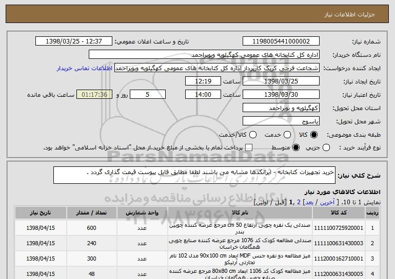 توضیحات خریدارخرید تجهیزات کتابخانه - ایرانکدها مشابه می باشند لظفا مطابق فایل پیوست قیمت گذاری گردد . هزینه حمل و تخلیه بار تا یاسوج بر عهده تامین کننده کالا می باشد