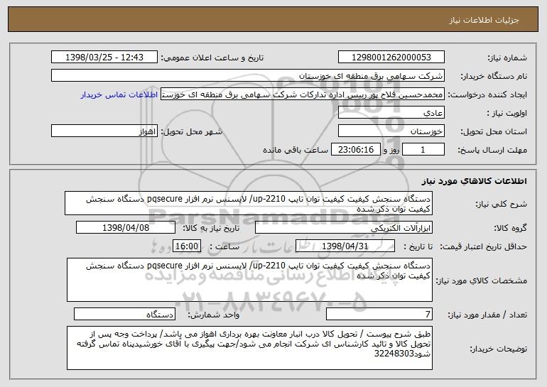 نام دستگاه خریدار:شرکت سهامی برق منطقه ای خوزستان