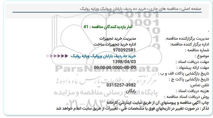 موضوع : خرید ده ردیف بارابان ورولیک وپایه رولیک