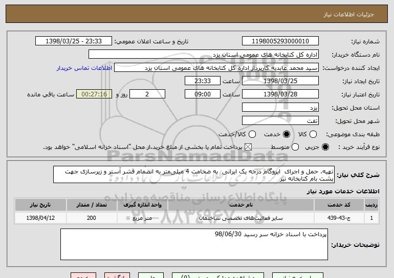 نام دستگاه خریدار:اداره کل کتابخانه های عمومی استان یزد