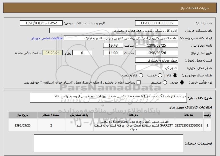 نام دستگاه خریدار:اداره کل پزشکی قانونی چهارمحال و بختیاری