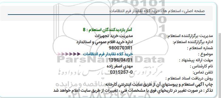 اداره برگزار کننده استعلام: اداره خرید اقلام عمومی و استاندارد