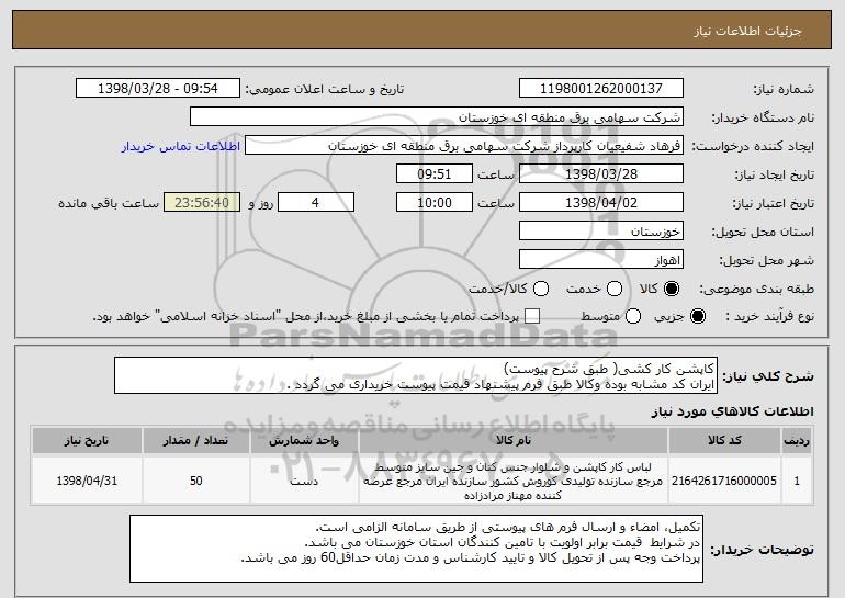 شرح کلی نیاز: کاپشن کار کشی( طبق شرح پیوست) ایران کد مشابه بوده وکالا طبق فرم پیشنهاد قیمت پیوست خریداری می گردد .
