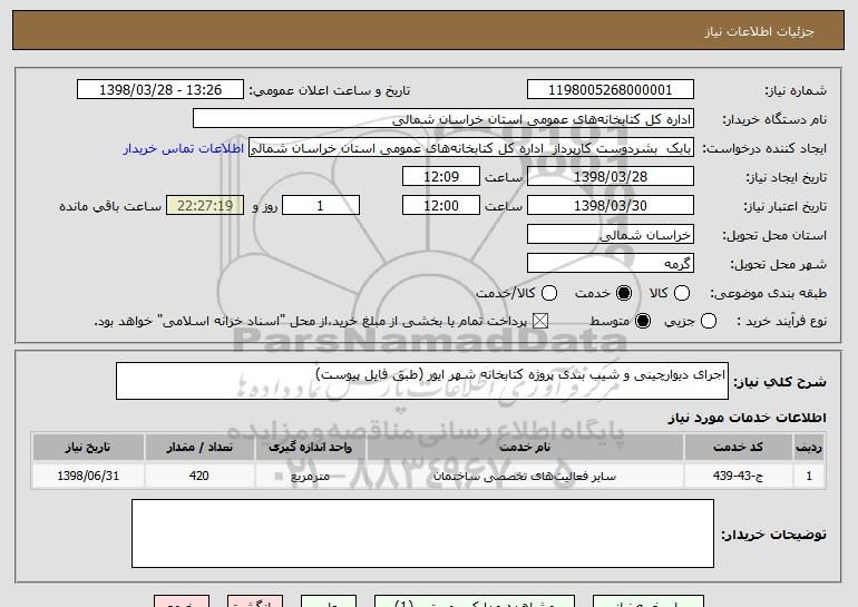 نام دستگاه خریدار:اداره کل کتابخانه های عمومی استان خراسان شمالی