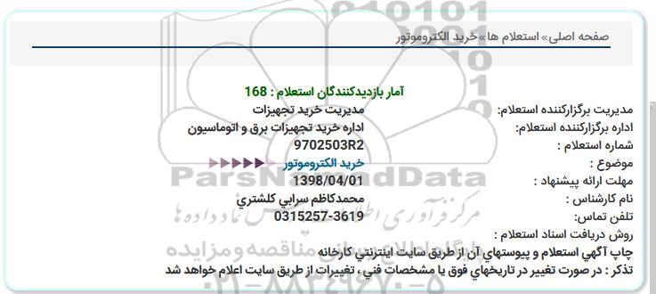 اداره برگزارکننده استعلام: اداره خرید تجهیزات برق و اتوماسیون