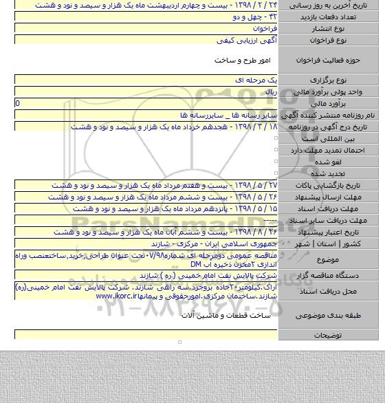 مناقصه عمومی دومرحله ای شماره۰۷/۹۸تحت عنوان طراحی٫خرید٫ساختعنصب وراه اندازی ۲مخزن ذخیره آب DM