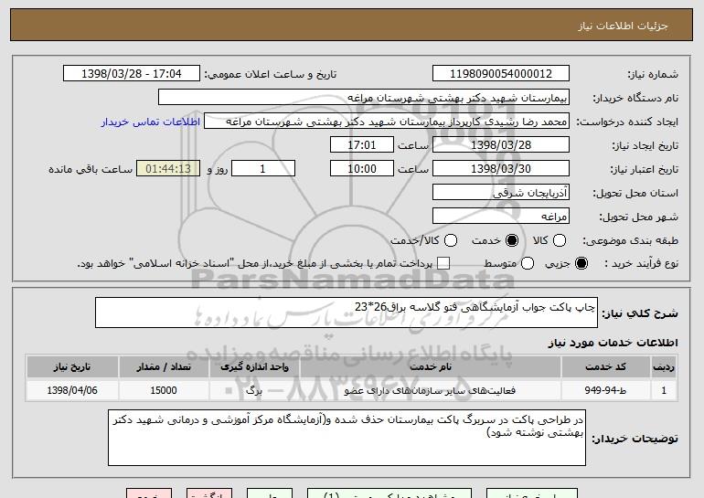 نام دستگاه خریدار:بیمارستان شهید دکتر بهشتی شهرستان مراغه