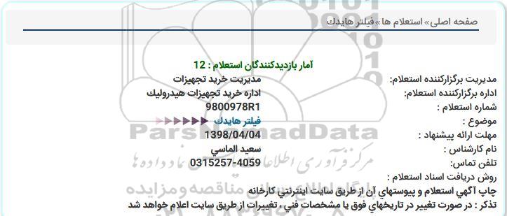 اداره برگزارکننده استعلام: اداره خرید تجهیزات هیدرولیک