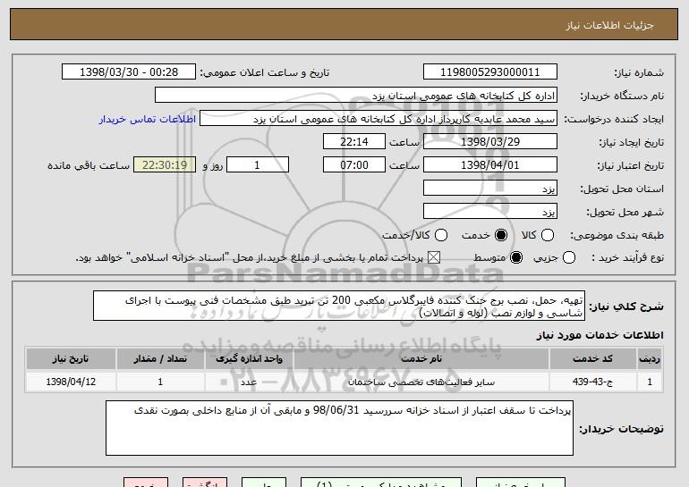 نام دستگاه خریدار:اداره کل کتابخانه های عمومی استان یزد