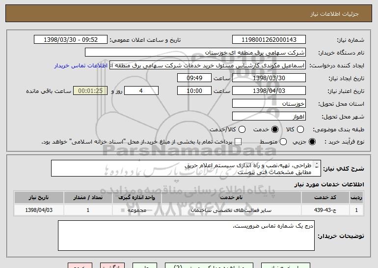 نام دستگاه خریدار:شرکت سهامی برق منطقه ای خوزستان