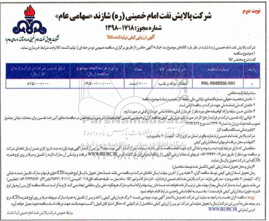 آگهی ارزیابی کیفی تولید کننده کالا ؟ نوبت  دوم